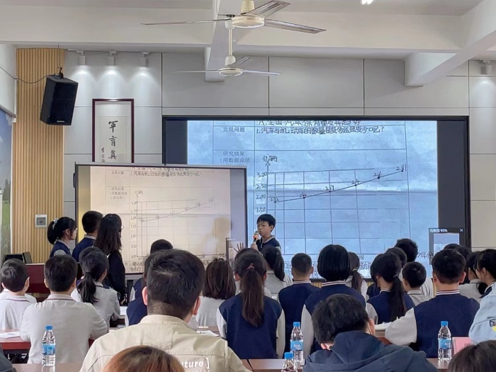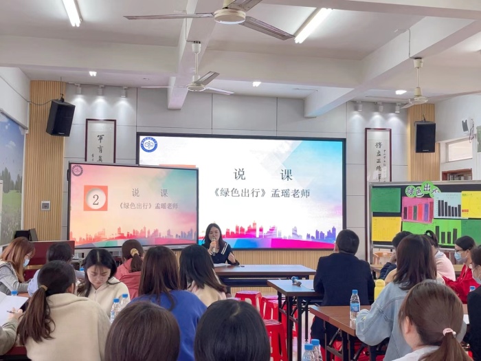 活動開始,將軍小學孟瑤老師與六(4)的孩子們帶來研究課例——《綠色出行》。孟老師的教學設計分為課前問題前置性探究、課中自主探究、課后切合生活探究三部分。在課堂上,孟老師通過小組交流探究、師徒合作等方式讓學生充分感受到綠色出行的重要性,培養科學的生活態度,樹立崇尚綠色出行的公民責任意識。本節課,孟老師將數學所具有的文化特征浸潤于學生的心田,使其成為學生數學學習過程中的動力源泉,也讓數學教學突破了傳統模式,使平淡的數學課堂鮮活了起來,引人入勝,激發起學生濃厚的學習興趣。