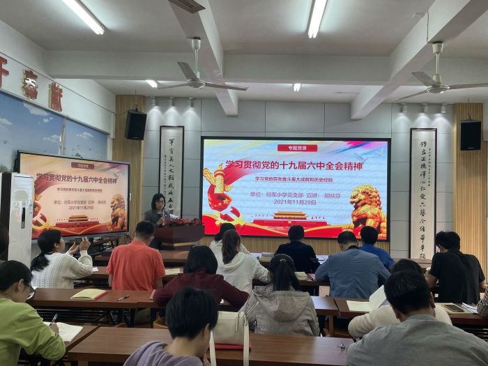 專題黨課后,胡書記對第三階段黨史學(xué)習(xí)教育作了詳細(xì)的部署安排。她希望將軍小學(xué)黨員教師帶頭認(rèn)真學(xué)習(xí)貫徹黨的十九屆六中全會精神,增強學(xué)習(xí)貫徹的政治自覺性,切實用十九屆六中全會精神武裝頭腦、指導(dǎo)實踐、推動工作,把學(xué)習(xí)成果轉(zhuǎn)化為實際行動,履職盡職、勇于擔(dān)當(dāng),為學(xué)校的持續(xù)健康發(fā)展貢獻(xiàn)自己最大的力量。
