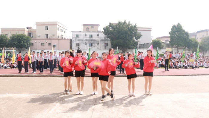 11月4日上午九點,校運會準時開始,在整齊劃一的出旗和激情昂揚的升國旗儀式后,黃再玲老師宣布校運會開幕!