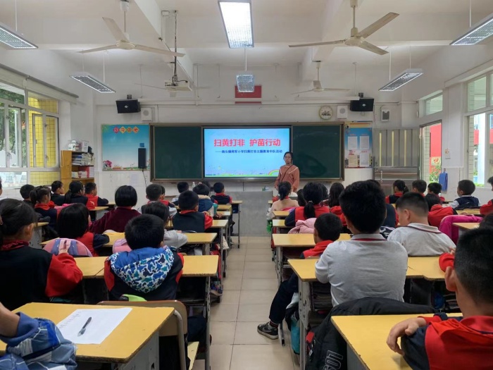 為深入開展“掃黃打非·護苗2021”專項行動,進一步加強未成年人思想道德建設,保障廣大學生健康成長,共同營造綠色、清朗的校園文化環境,2021年10月22日下午,南頭鎮將軍小學利用班隊活動課開展“掃黃打非”主題教育活動。