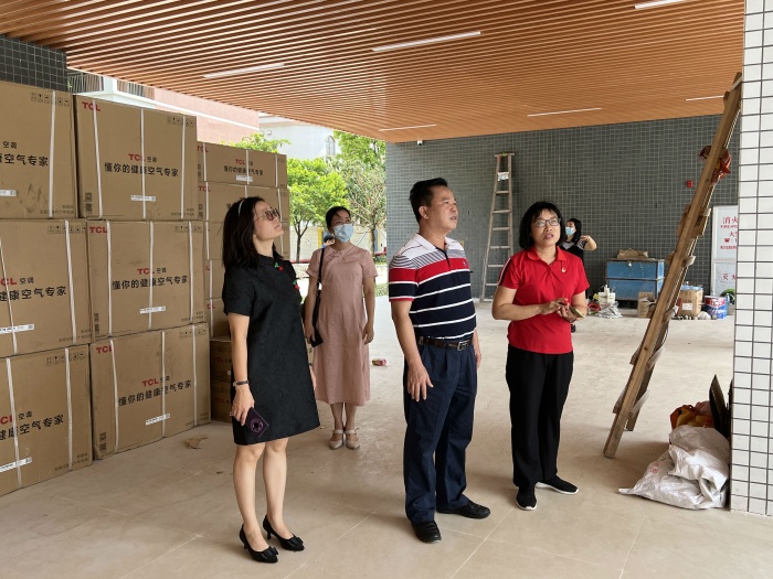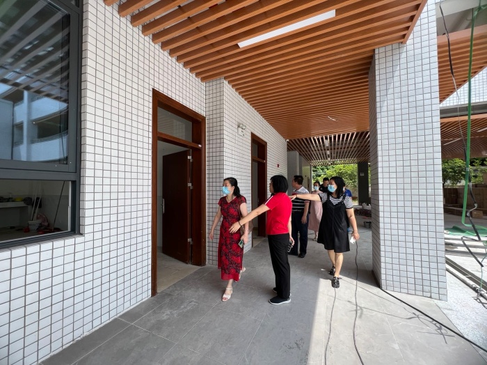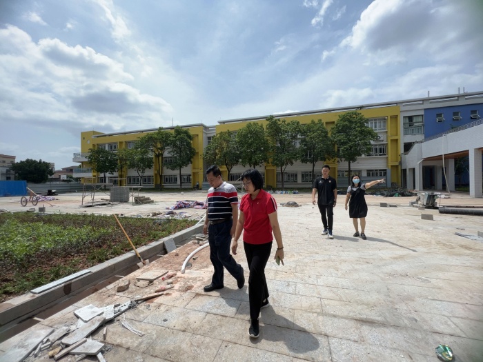 2022年9月2日上午,南頭鎮教育和體育事務中心謝桂華主任,教研員梁柳珍、郭淑娟、張月音、黃再玲、姚利芳一行來到將軍小學新綜合樓工地現場進行視察。將軍小學校長胡映芬、副校長吳偉剛以及德育主任李宗強、德育副主任梁青嬌等陪同視察。