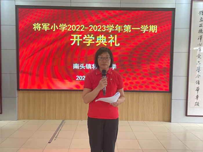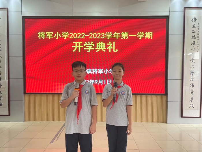 最后,胡映芬校長為全校師生送上新學期的祝福,歡迎大家重回可愛的校園,并向加入將軍小學的教師和一年級新同學表示熱烈歡迎。胡校長從“態度決定高度”“成長比成績更重要”等方面向全體師生提出新學期的希望,號召全體師生一起攜手,為了偉大祖國明天的繁榮昌盛,為了將軍小學更好的未來,努力學習,努力拼搏!