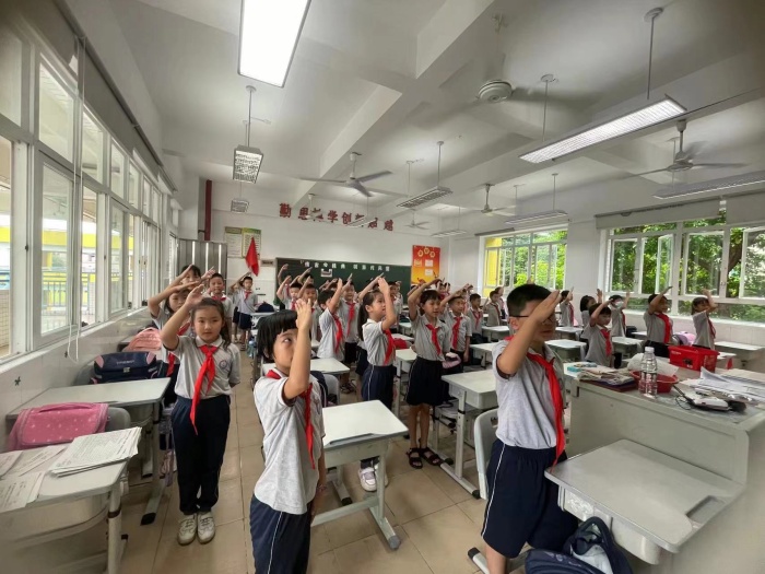 接著,學校德育處梁青嬌副主任對孩子們進行了安全教育、品德教育、感恩教育、理想教育。這是對風華學子的期望,也給大家指明了新學期的努力方向。