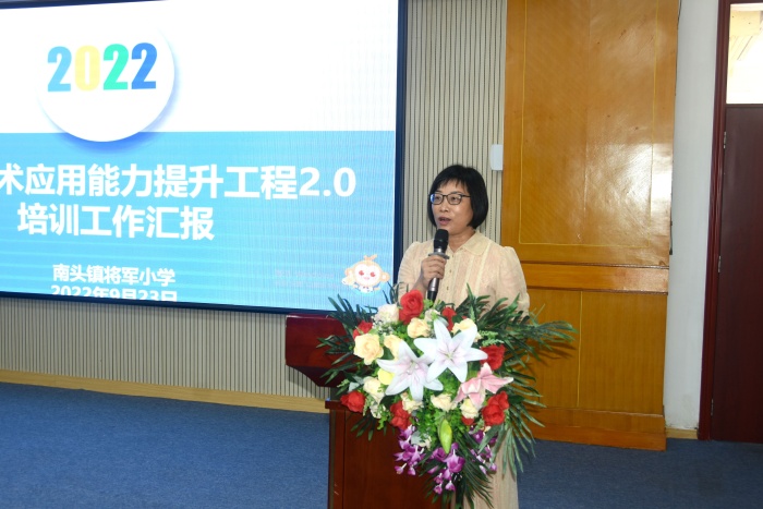 接著東鳳鎮(zhèn)民和小學(xué)歐雪梅副校長和南頭鎮(zhèn)將軍小學(xué)胡映芬校長作為代表依次匯報(bào)教師信息技術(shù)應(yīng)用能力提升工程2.0整校推進(jìn)工作。
