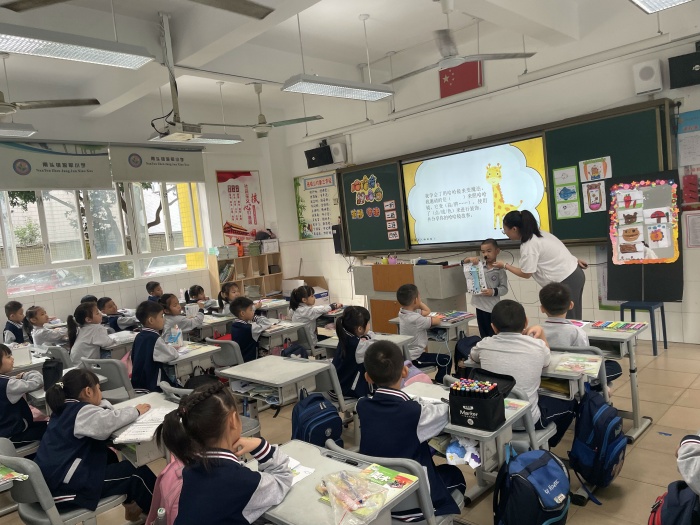 接著,將軍小學(xué)江智老師為大家?guī)怼豆R,笑哈哈》。她根據(jù)一年級學(xué)生天真燦漫的年齡特征,利用有趣的繪本故事《獅子照哈哈鏡》導(dǎo)入,哈哈鏡不但是學(xué)生熟悉的物體,更由于它能使鏡中人物“變形”而吸引了學(xué)生的注意力。江老師在整個課堂中,將有趣的繪本學(xué)習(xí)和哈哈鏡游戲靈活貫穿其中,如行云流水,一氣呵成。課堂以哈哈鏡的笑聲開始,又以打開折疊畫后發(fā)現(xiàn)了“哈哈鏡”的開心一笑為本節(jié)課畫上了完美的句號。