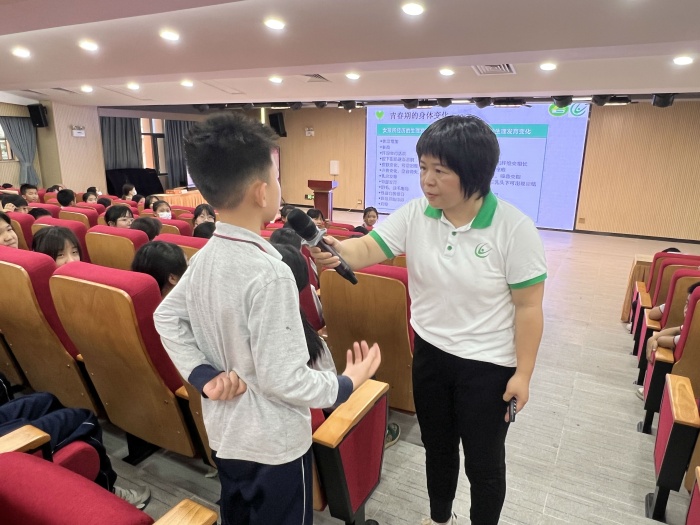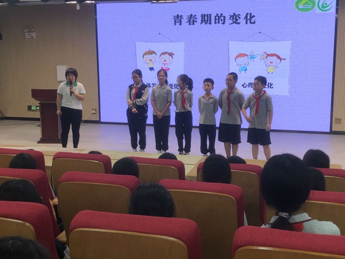 接著,郭老師通過現(xiàn)場問答、案例分析等多種形式,向同學(xué)們介紹了青春期身體以及心理的變化,教育學(xué)生學(xué)會“悅納自我 尊重他人”,正視青春期心理變化,交往應(yīng)有度,呵護(hù)心理成長。在講座的過程中,郭老師一直鼓勵學(xué)生克服羞澀,積極參與,踴躍發(fā)言。郭老師的講座淺顯易懂,生動有趣,氣氛活躍,贏得學(xué)生們一陣陣掌聲。