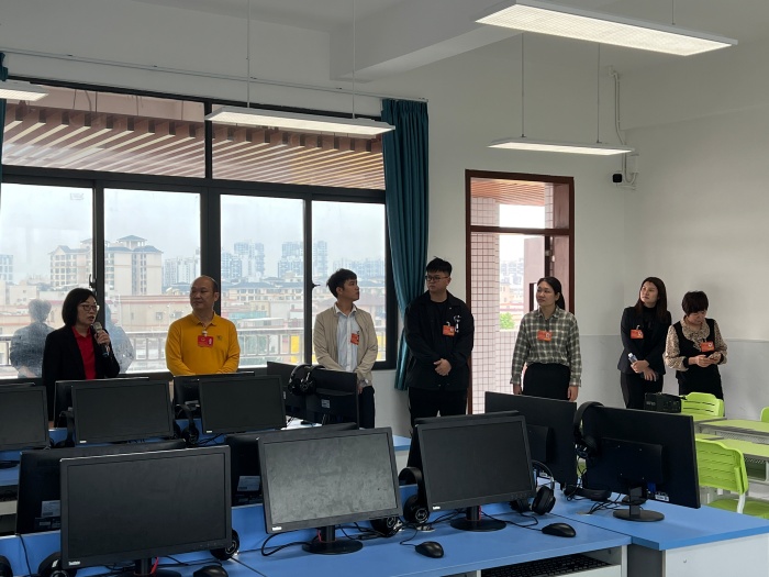 視察組一行在胡映芬校長的帶領下,參觀了新報告廳、各樓層音樂室、高年級新教室、少先隊活動室、黨員活動室、書法室等場所。視察組全方位了解學校各項工作開展情況,并對學校硬件建設、教學環(huán)境改善、校園綠化美化和場室的配備、管理、使用以及學生安全教育等方面進行詳細詢問。