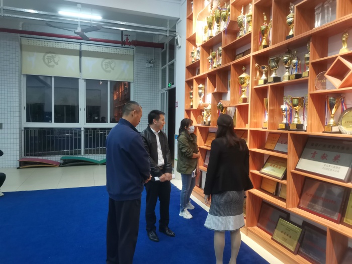 梁健海副書(shū)記一行在嚴(yán)校長(zhǎng)的陪同下走訪校園、教室及體藝綜合樓,了解學(xué)校總體情況。梁健海副書(shū)記先是向嚴(yán)校長(zhǎng)了解并實(shí)地視察了學(xué)校課后服務(wù)工作的開(kāi)展情況,對(duì)學(xué)校特色發(fā)展和辦學(xué)理念提出了高屋建瓴的建議。隨后,梁健海副書(shū)記還來(lái)到了學(xué)校的武術(shù)室,關(guān)心學(xué)校武術(shù)隊(duì)的訓(xùn)練情況。嚴(yán)校長(zhǎng)向梁健海副書(shū)記一行匯報(bào)了學(xué)校的辦學(xué)理念、武術(shù)特色和學(xué)校基本情況。在聽(tīng)取嚴(yán)校長(zhǎng)的匯報(bào)后,梁書(shū)記希望民安小學(xué)繼續(xù)把武術(shù)特色發(fā)揚(yáng)光大,同時(shí)肯定了學(xué)校的辦學(xué)特色鮮明,各方面工作都有敢干敢闖的精神。