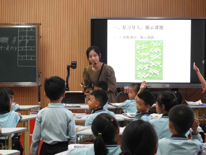 在下午的比賽中,首先是由升輝小學的梁燊婷老師為大家展示的二年級下冊的內容——《平均分》。梁老師通過讓學生把6張、4張和12張紙條進行分一分的活動,在探究中理解“平均分”的意義。第二節課是由民安小學麥婉珊老師帶來的一年級下冊的內容——《數數與數的組成》。麥老師巧妙地將學生的10個手指“轉化成”學具,在數一數的活動中讓學生認識了一百以內的數,突破了難點。最后一節課是由中心小學溫書瀅老師帶來的三年級下冊的內容——《口算除法》。溫老師通過小組合作交流等形式,引導學生自主探究出除數是一位數除法的口算方法。