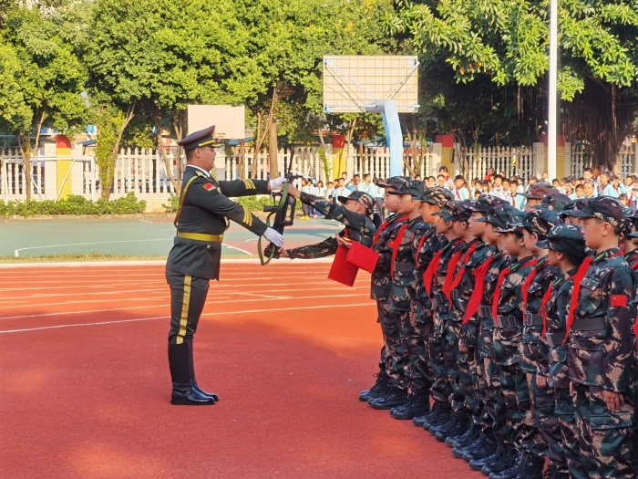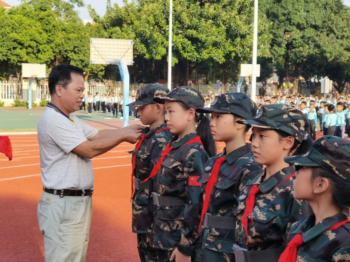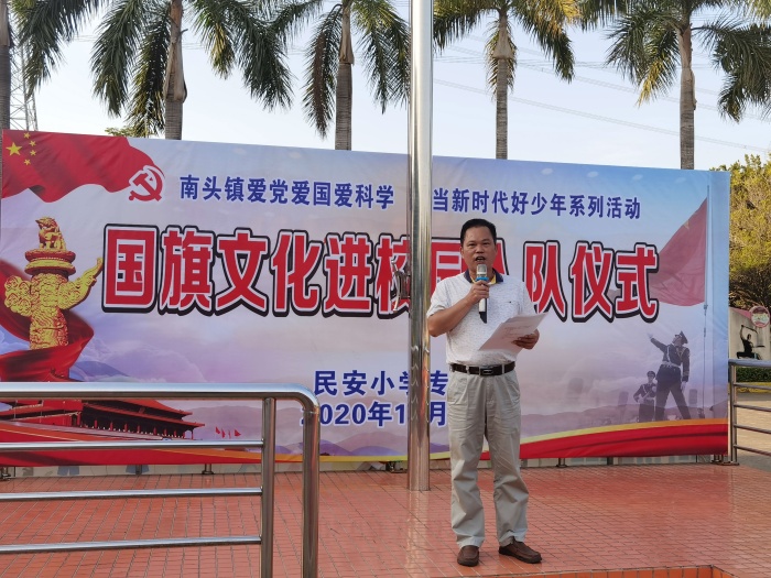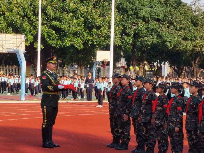 授銜儀式后,南頭鎮(zhèn)教育和體育事務中心主任謝桂華勉勵全體師生,要向學習軍人們的紀律作風,以高標準要求自己,從小養(yǎng)成良好習慣,樹立遠大理想,愛祖國,愛家鄉(xiāng),長大后為祖國做出自己應有的貢獻,向國旗致敬!