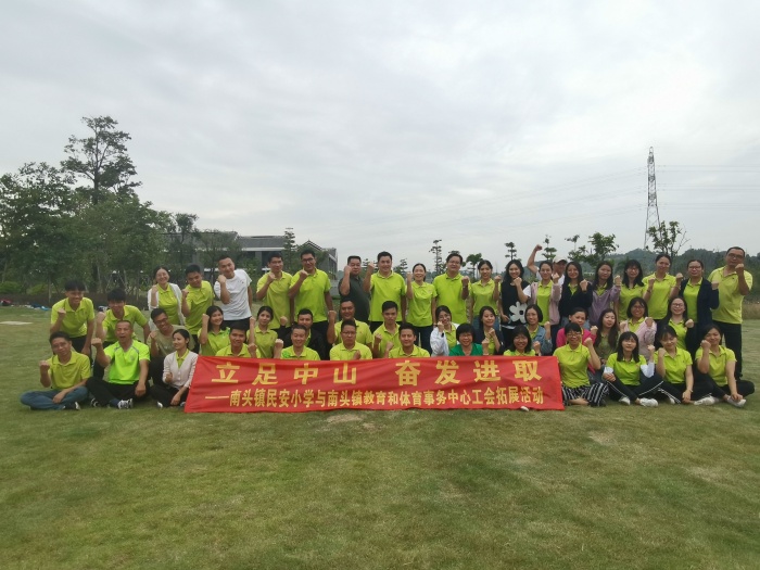 為進一步推進和諧校園建設,豐富教職工文體生活,調動全體教師的工作熱情與干勁,增強教師之間團結協助精神,激發教師個人潛能,10月24日,南頭鎮民安小學與南頭鎮教育和體育事務中心聯誼,赴中山市南朗鎮翠亨新區進行了一場以“立足中山,奮發進取”為主題的教師戶外拓展活動。