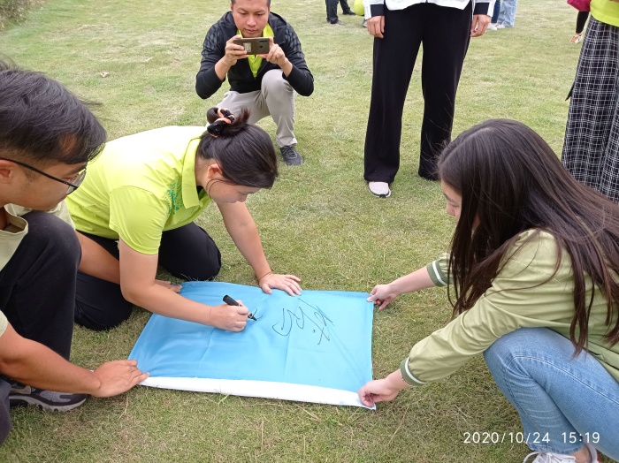 隨后,團隊教練將全體教師隨機分成了四個隊伍,大家集思廣益制作隊旗,創作隊名、口號及團隊造型。接著,在各隊長的帶領下,全隊隊員經過練習后,四個隊伍在規定的時間內,順利完成乾坤大挪移、中國龍、激情節拍等項目。活動中,每位老師都全情投入,共同克服每一個困難,笑聲、加油聲、口號聲、歡呼聲響徹大地!