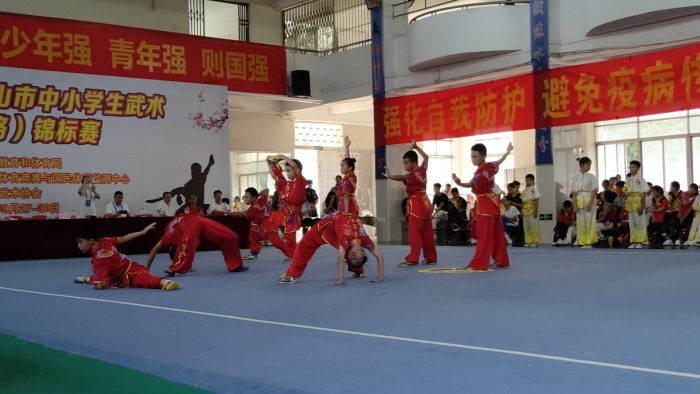 本次比賽設置長拳、南拳、太極拳、刀、劍、棍、槍、集體基本功八大項,分小學和初中兩個組別,來自全市14所學校,共二百多名武術運動員參賽。