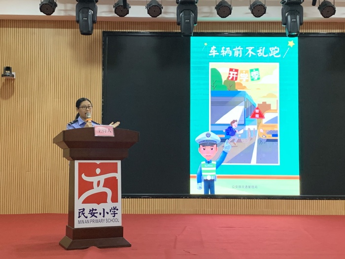 此次開學(xué)典禮得到了南頭鎮(zhèn)關(guān)心下一代工作委員會的支持,南頭鎮(zhèn)關(guān)工委黃祺宗副主任、梁細(xì)言委員、何華嬌委員出席了本次開學(xué)典禮。本次開學(xué)典禮第一項(xiàng)內(nèi)容,是由黃祺宗副主任對全校師生進(jìn)行講話。黃爺爺勉勵孩子們在新的學(xué)期要以最積極的狀態(tài)迎接新的學(xué)習(xí)和挑戰(zhàn),同時要把老師們的教育內(nèi)化于心,外化于行。接下來,是由民安小學(xué)法制副校長錢國飛警官給全體師生上了一堂生動的法制課,有效地提高了師生的法制意識。開學(xué)典禮第三項(xiàng)內(nèi)容,則是由南頭鎮(zhèn)消防中隊(duì)的羅俊昌消防員為全體師生介紹火災(zāi)的預(yù)防和應(yīng)急處理等消防安全知識。而后,南頭鎮(zhèn)交警大隊(duì)的鐘艷芬警官就學(xué)生的出行交通安全做了詳細(xì)的介紹。