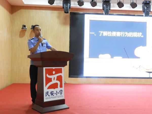 為持續(xù)深化法制教育,不斷豐富中小學(xué)生法律常識、安全意識,增強(qiáng)法制觀念。2020年7月3日下午,南頭公安分局在南頭鎮(zhèn)民安小學(xué)組織開展小學(xué)法制教育系列講座活動,南頭公安分局治安大隊大隊長馮杰平,南城派出所副所長錢國飛、民警吳遠(yuǎn)東,民安社區(qū)黨委副書記梁發(fā)銳,市人大代表、民安小學(xué)校長嚴(yán)玲珍出席了講座。