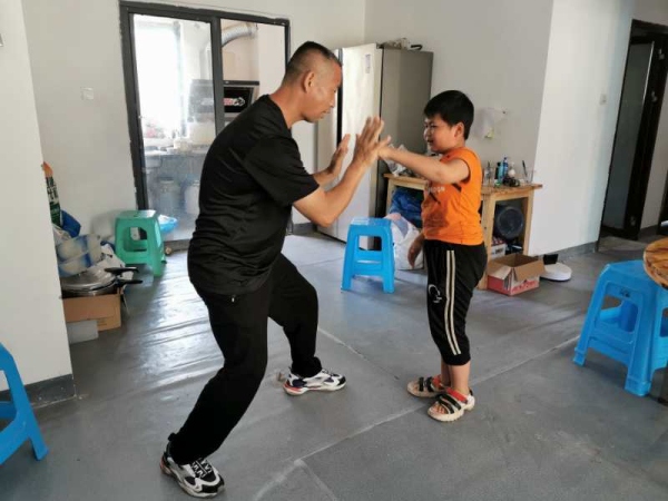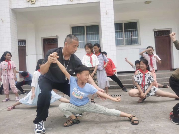 因支教老師數(shù)量有限,苗華林老師要擔起一周十節(jié)課的教學任務,還要帶一個40多人的興趣班,下午放學后再教全體老師學太極拳,周末還要跟著當?shù)氐睦蠋熑埣埠⒆蛹壹以L、送教上門。面對著毫不熟悉的孩子們,看到他們對武術(shù)的渴望與期待,決心要帶他們走進中華傳統(tǒng)武術(shù)中,讓他們感受武術(shù)的魅力。當面對那位因為孩子爸爸砍柴摔傷,導致破傷風去世,媽媽改嫁后經(jīng)常遭到家暴的孩子把武術(shù)有板有眼時;當去到有智力障礙的孩子家中與他交談,給予孩子更多的關(guān)愛與鼓勵時,苗老師說這是“累并快樂著”。