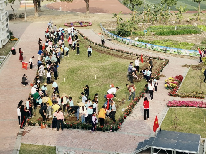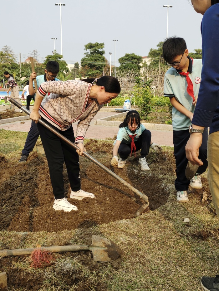 第二項活動主要是家長和學生在校園種植植物。家長和同學們發揚不怕苦,不怕累的雷鋒精神,拿著鐵鍬,鋤頭,在種植園清理雜草,培育花草等。通過幾個小時的努力,種植園彌漫著淡淡的花香,煥然一新,生機盎然。