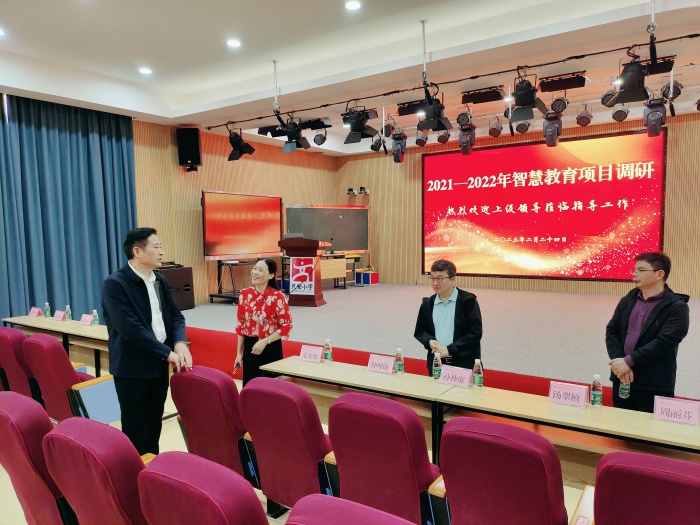姜術俊副局長一行首先在學校嚴玲珍校長、吳釗和副校長等行政班子陪同下,認真查看了學校智慧教室的教學開展情況。嚴校長向蒞臨學校調研的各位領導介紹了學校總體情況和信息化建設情況,她表示學校正在號召全體教師強化信息技術知識,為教育教學工作積蓄能量。