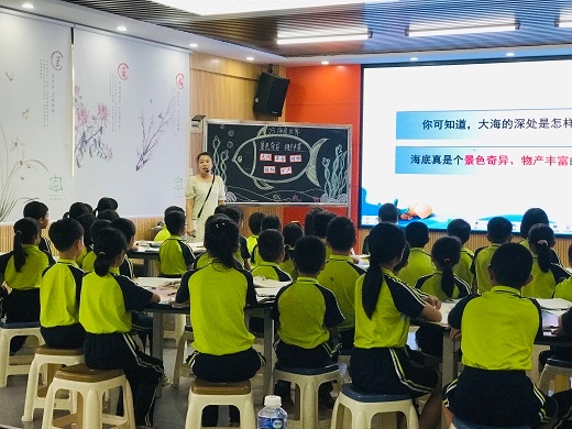 活動伊始,升輝小學周梓怡老師與三(4)班的孩子為大家展示了一節寓教于練的閱讀教學課例——部編版三年級下冊《海底世界》。周老師深入研讀教參文本,關注本單元語文要素的訓練。課堂上通過“以讀促悟、以讀促寫、以文帶文”層層遞進的練習拓展,達到落實語文核心素養的目標。課后周老師針對本節課教學設計進行說課,清晰的思路,凝練的語言、讓大家對課例有了更為深入的認識。