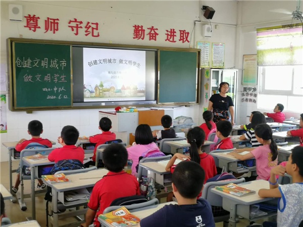 班會課上,各班主任們進行創建文明城市知識宣傳,倡導學生們從自己做起,從小事做起,從身邊做起,爭當文明小市民;通過PPT課件,讓學生懂得亂闖紅燈、亂吐亂扔、亂寫亂畫、亂掛亂貼是影響環境衛生的不文明行為,希望能通過孩子對不文明行為的勸導,潛移默化地影響大人及家庭的文明行為,從而促進城市文明創建活動的開展。