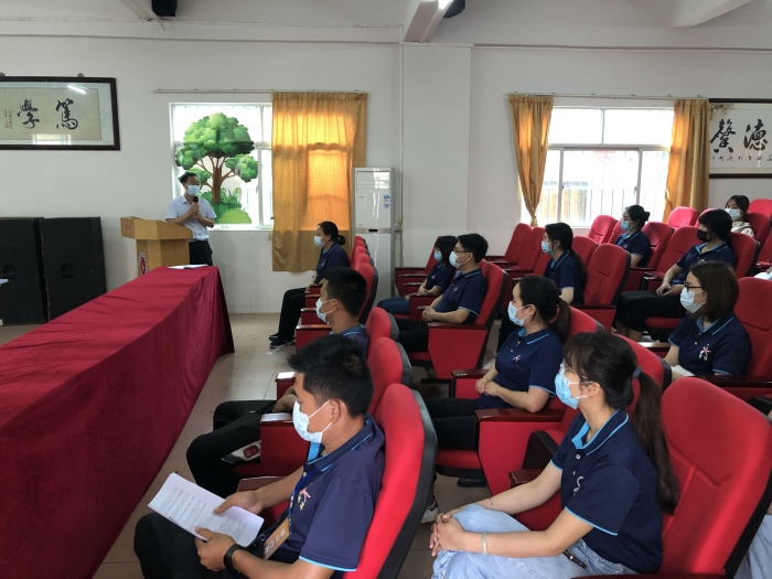 為切實有效地防范和積極應對春季新冠肺炎疫情,進一步提高應急能力,及時、科學、規范、有序處置可能出現的新冠肺炎疫情。2022年5月10日上午,中山市黃圃華洋學校開展了新冠肺炎疫情處置桌面推演。中山市黃圃華洋學校聶長紅校長、各應急組員代表以及學校教師參與了這次演練。黃圃鎮教育和體育事務中心教研員姚勁強老師和黃圃鎮人民醫院副院長楊靈院長蒞臨學校指導疫情防控應急演練活動。