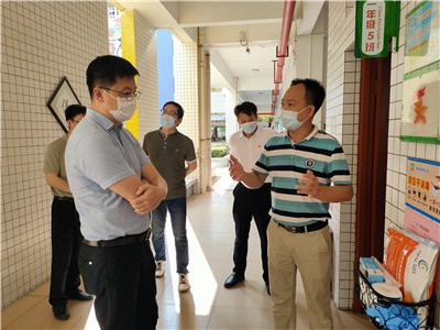 5月8日下午,根據《關于開展中山市2020年春季學期學生返校疫情防控第二、三批學校復檢、驗收工作的通知》精神,南頭鎮紀委書記余漾、黨委委員薛焯明、副鎮長肖彥余、黨政辦副主任李純華等南頭鎮返學工作領導小組到升輝小學對學生返校疫情防控第二、三批學校工作進行預檢,升輝小學全體行政陪同預檢。檢查組重點檢查校園疫情防控物資保障、防疫制度及防疫宣傳教育落實等情況,并對教學樓、校門口、辦公區、校醫室、隔離留觀室等場所進行檢查。余漾同志重點強調,疫情防控的物資必須得保障到位,各個場所也要按照標準布置好相關的內容;薛焯明同志也提出了兩點要求:一是學生返校各項工作必須認真落實到位,責任到人,保證返校復學工作順利開展;二是注重師生的心理健康,對個別心理個案要建立一檔一冊,發現問題及時處理,保障師生的身心健康。