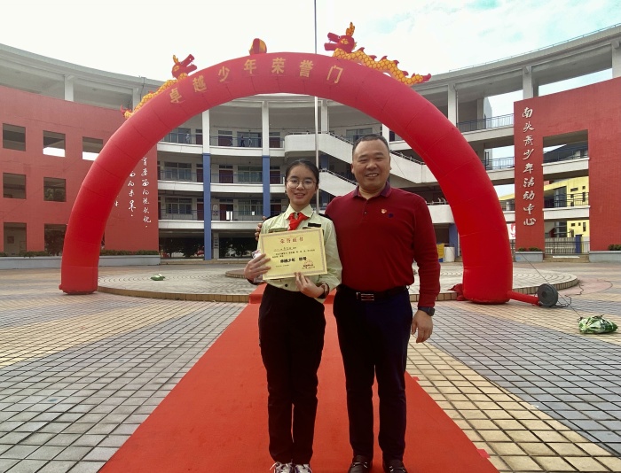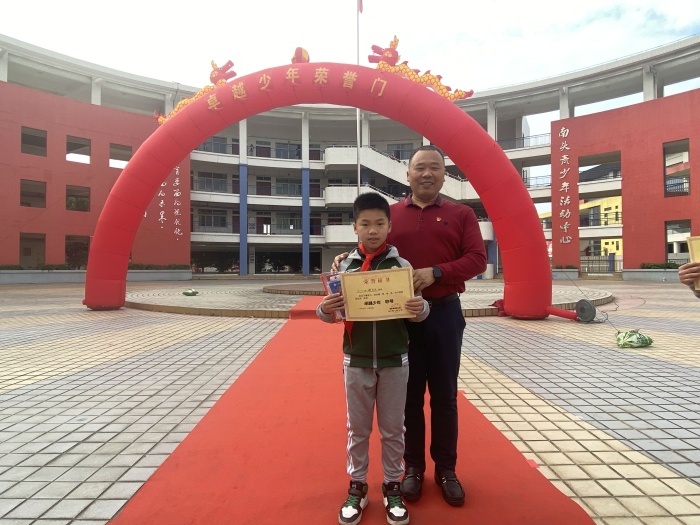 本次評優活動,充分發揮優秀學生的榜樣示范作用,在學生中形成學習先進、崇尚先進、爭當先進的濃厚氛圍,學校組織開展校級“四樂少年”的個人自薦、班級推薦、學校展評的活動,集齊“樂真”“樂善”“樂美”“樂健”四項榮譽的學生,被評為“卓越少年”。國旗下,獲得“卓越少年”表彰的學生們依次走過紅毯,走上主席臺,紅領巾迎風飄揚,無比鮮艷。學校衛坤校長、吳婉韻副校長為“卓越少年”頒發榮譽獎狀和胸章。最后,吳婉韻副校長對受到表彰的同學表示祝賀,并希望同學們在今后的學習和生活中,時刻以“卓越少年”的標準嚴格要求自己,為班級爭光,為學校添彩。會后,獲獎學生和衛坤校長在榮譽門前進行合影留念,記錄下讓人驕傲的瞬間。學校通過“卓越少年”評選活動的全年開展,激勵學生學習身邊榜樣,幫助學生實現從“他律”到“自律”的轉化,營造濃厚的學習氛圍。