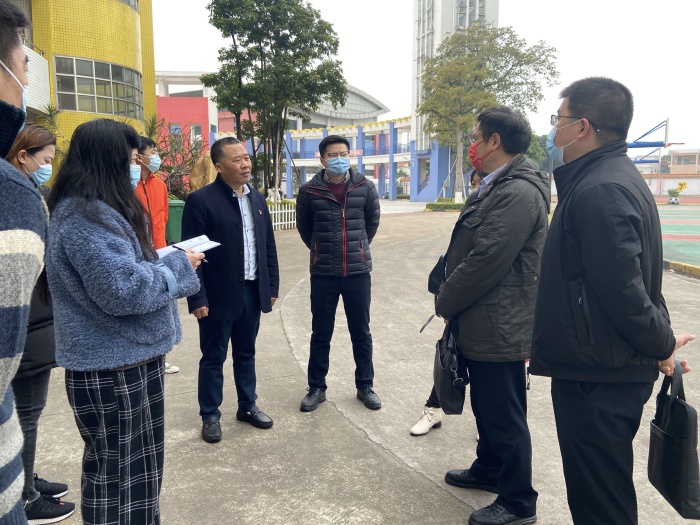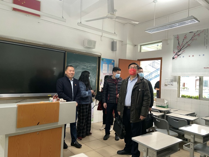 2022年2月11日上午,中山市教體局領導四級調研員黃慶財一行和南頭鎮教體文旅局副局長洪愛華一行到南頭鎮中心小學進行2022年春季開學疫情防控工作檢查,指導學校開學疫情防控和校園安全工作。南頭鎮中心小學衛坤校長、吳婷環主任、曾立主任以及防疫組成員陪同檢查。
