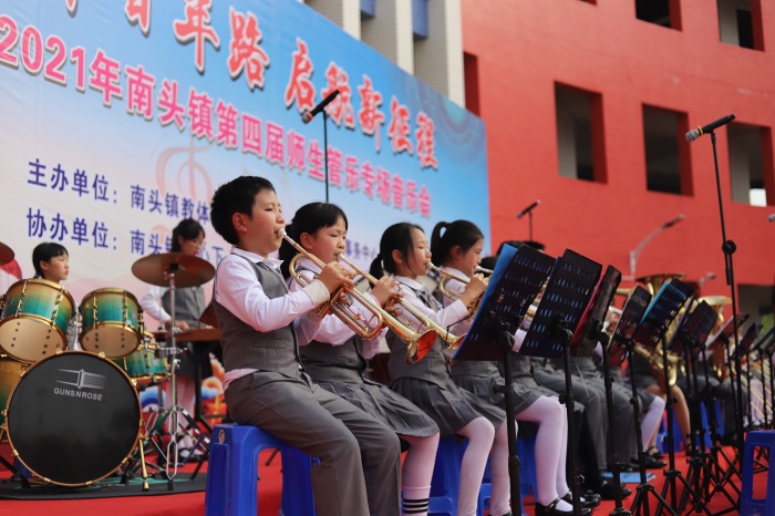 冬日暖陽,溫暖如煦。為豐富校園文化生活,倡導健康高雅的文化藝術活動,提升校園文化品位,增強藝術育人效果,12月22日下午,由南頭鎮教體文旅局、鎮教育和體育事務中心、鎮中心小學主辦,南頭鎮關心下一代工作委員會協辦的以“奮斗百年路 啟航新征程”為主題2021年南頭鎮第四屆師生管樂專場音樂會在中心小學舉行。