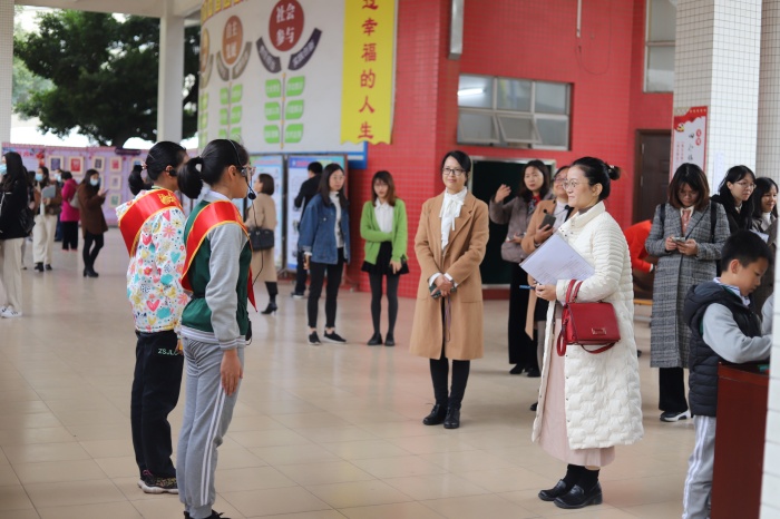聽課完畢后,與會老師集中報告廳,在小導游聲情并茂的解說下,向他們介紹了各大展板的內容以及學校的情況。接著,參觀了學校社團的開展情況。中心小學的各類社團豐富多彩,有趣味十足的創客社團、文化氛圍濃厚的花燈社團、實力強勁的管樂隊、配合默契的鼓號隊等,中心學子在其中施展才華、提升自我。