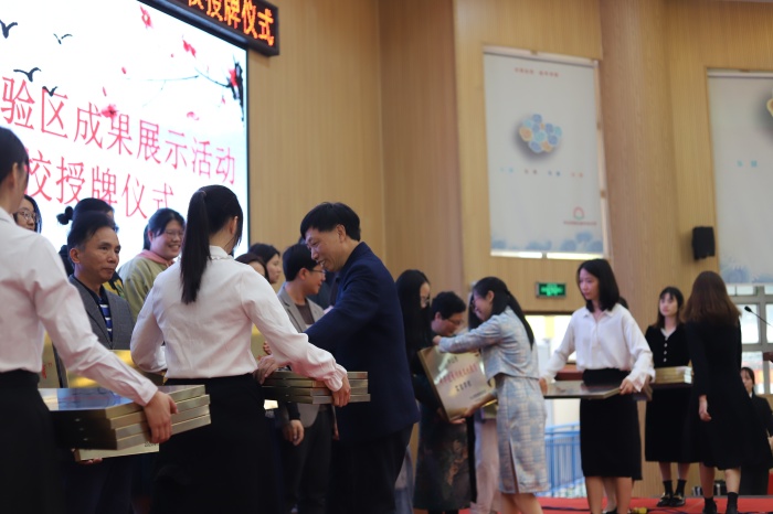 首先,林曉潔老師對中山市2020-2021學年中華優秀傳統文化教育工作進行總結。她表示,過去一年中山市在中華優秀傳統文化教育工作上作出的成績值得肯定,開展的活動影響大,各項研究精細,成效顯著。同時,她也明確開展中華優秀傳統文化教育工作需要重內涵,將所有工作落到實處。接著,陳春艷會長和林曉潔老師對中華古詩文吟誦和創作實驗區、中山市中華優秀傳統文化教育實驗學校進行授牌。