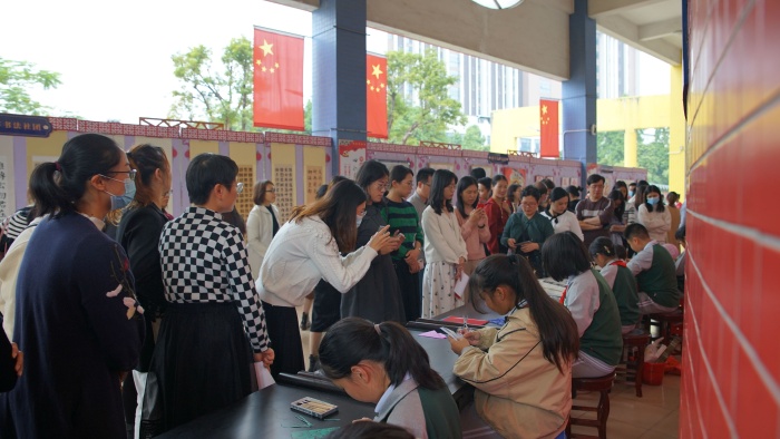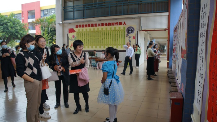 下午的活動從中華優秀傳統文化教育成果展開始。與會人員漫步校園,感受南頭鎮中心小學開展傳統文化工作的成果。一位位小解說員親切地向老師們介紹學校的特色活動,從版畫、陶泥、花燈、剪紙到書法,展演作品異彩紛呈,受到全體教師的一致好評。隨后,南頭鎮中心小學安排了吟誦節目展演。活動中,參演學生精神飽滿、感情充沛,向現場觀眾展示了《花燈》《上學歌》《無衣》《風雨迎春頌華章》等精彩節目,充分體現了南頭鎮中心小學在中華優秀傳統文化工作開展上的成效。
