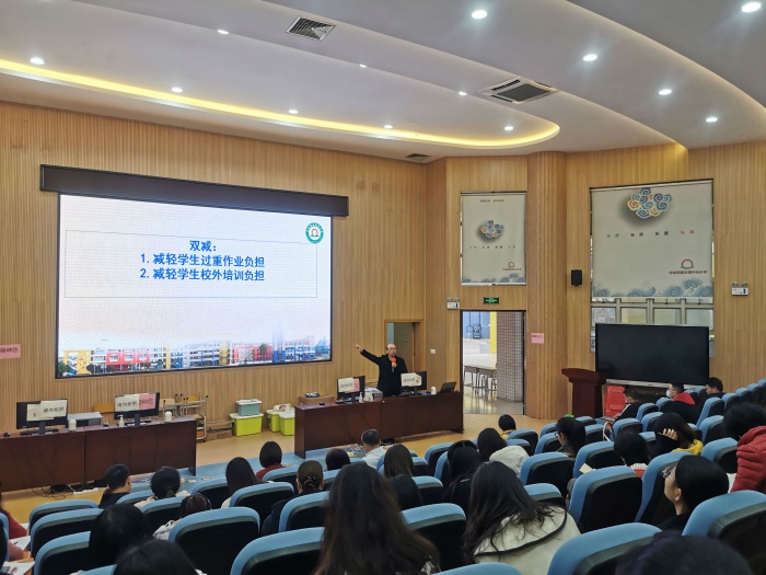會上,郭建平副校長向全體教師重申了國家“雙減”和“五項管理”政策的相關規定,積極引導全體教師提高工作與服務標準,落實“雙減”工作力度與效益的基礎上,堅持遵循關于加強中小學生“五項管理”的通知要求,確保學校各項工作的穩步推進。郭副校長還對作業管理工作提出了明確的要求,一是嚴格作業布置,作業布置要有規范性、針對性和層次性,嚴禁給家長布置作業或要求批改作業;二是優化作業設計,把握作業難度,提高作業質量,由班主任負責協調科任老師統籌作業量,做好分層作業和作業時長的登記,三是嚴肅作業批改,要求老師們做到全批全改學生的書面作業,精準分析學生學情數據,及時訓練,開展個性化輔導;采取集體講評、個別講解等方式有針對性地及時反饋;充分發揮作業反饋的育人功能、激勵和溝通功能,增進學生對教師的信任,建設良好的師生關系,真正實現減負增效。