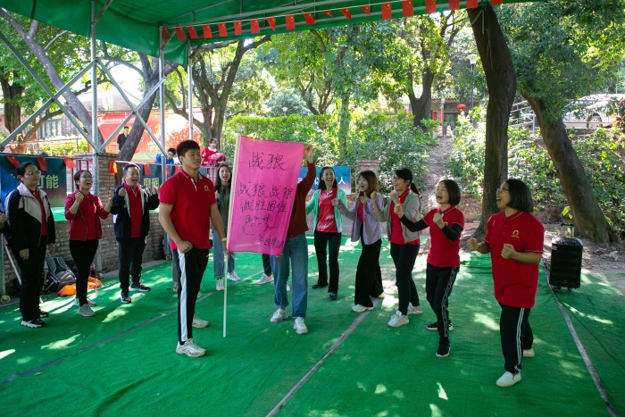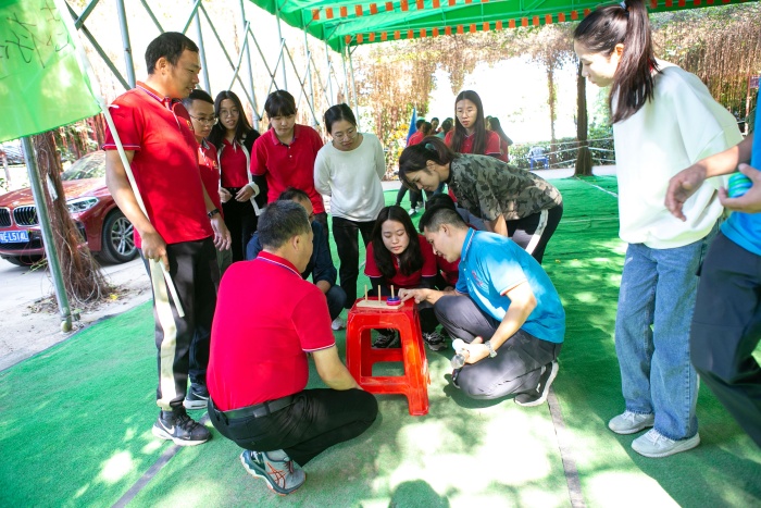 隨后,在團建游戲環(huán)節(jié)中,老師們進行團隊競技,一場智力和體力的精彩活動逐漸拉開了帷幕,老師們蓄勢待發(fā)、齊心協(xié)力。加油聲,歡呼聲不斷,將現(xiàn)場的氣氛推向了高潮。比賽內容主要包括:智慧漢諾塔和齊心鼓擊球。每一項比賽,都需要教師團隊合作,才能最終取得勝利。教師團隊頑強拼搏,昂揚向上的精神;相互包容,相互配合、相互扶持的良好品質展現(xiàn)無遺。大家在拉進彼此之間距離的同時,無形之中增強了集體的榮譽感、團隊的凝聚力和執(zhí)行力。各式各樣的游戲展現(xiàn)了老師們獨特的魅力與風采,增強了團隊凝聚力。在學習黨史的同時,各團隊之間既合作又競爭,最終實現(xiàn)團隊融合的目標,也培養(yǎng)了全體教職員工艱苦奮斗的精神,鼓勵大家以熱情飽滿的面貌迎接未來的挑戰(zhàn)。