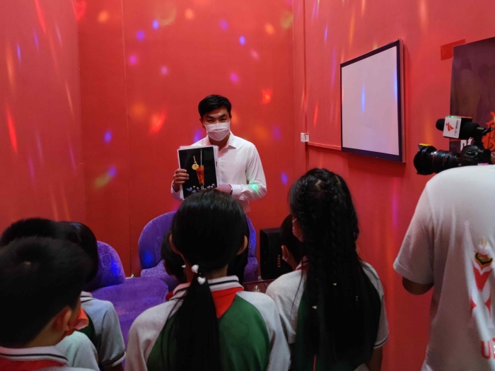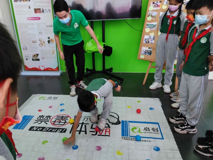 接著,學(xué)生們分成兩組開展體驗活動。禁毒基地設(shè)有多個體驗區(qū)和展示區(qū),包括模擬法庭區(qū)、模擬監(jiān)獄區(qū)、模擬KTV區(qū)、禁毒迷宮區(qū)、禁毒設(shè)備區(qū)、毒品模型展示區(qū)。學(xué)生在社工的帶領(lǐng)下逐一參觀,通過觀看宣傳展板、毒品模型認識了毒品的特征和種類,引起了同學(xué)們的重視,提高其對毒品的警惕性,同時還了解了如何抵御毒品侵害的措施。同學(xué)們還紛紛參與了不同的禁毒游戲體驗。其中最能吸引同學(xué)們的是吸毒致幻體驗,這部分體驗是先戴上特制眼鏡,再抓小球,這時候是很難抓中,因為特制眼鏡能讓人產(chǎn)生炫目,從而達到類似吸毒致幻的感覺,所以需要抓兩、三次才能抓中。同學(xué)們在游戲中體驗吸毒后的不良感受,感受到了毒品的恐怖,直觀認識到毒品的危害。以聽、看、體驗的模式寓教于樂,大大激發(fā)了學(xué)生學(xué)習(xí)禁毒知識的積極性和主動性,切實有效地增強學(xué)生識毒、防毒、拒毒意識和防范新型毒品的能力,營造了無毒校園的良好氛圍。