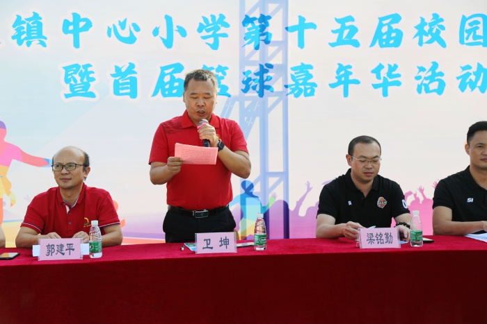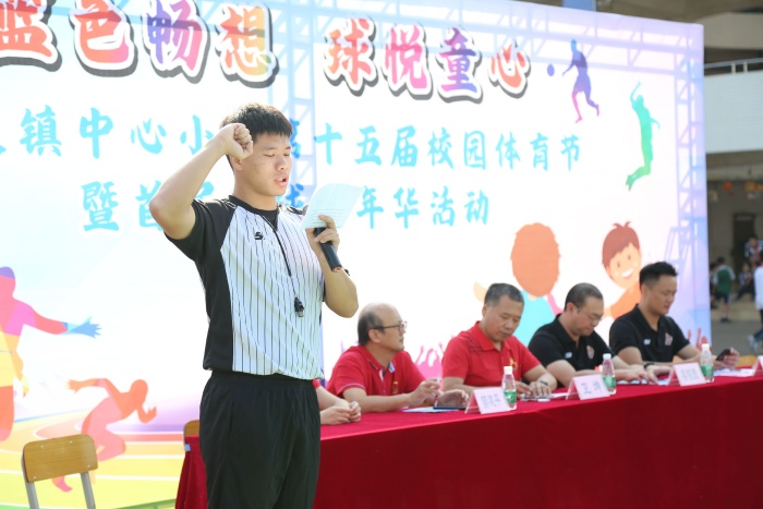 運動會開幕式上,各個年級代表方隊以及教師方隊帶來了籃球操,活力十足,震撼全場。方隊過后,校長衛坤為此次運動會開幕式致辭,他對本次運動會幕后人員表示衷心的感謝,肯定了“友誼第一,比賽第二”的體育精神。接著,南頭鎮教體文旅局黃再玲老師和南頭鎮籃球協會會長梁銘勤進行發言,倡導參賽者嚴守規則、尊重裁判、文明參賽、注意安全,并提出要求:希望運動員們在賽場上奮力拼搏,賽出成績,賽出水平!隨后,裁判員代表發言并表示將本著“公平公正公開”的原則為本次運動會負責。運動員代表表示會“賽出風格,賽出水平”,弘揚體育精神,將全力拼搏秀出中心學子本色。