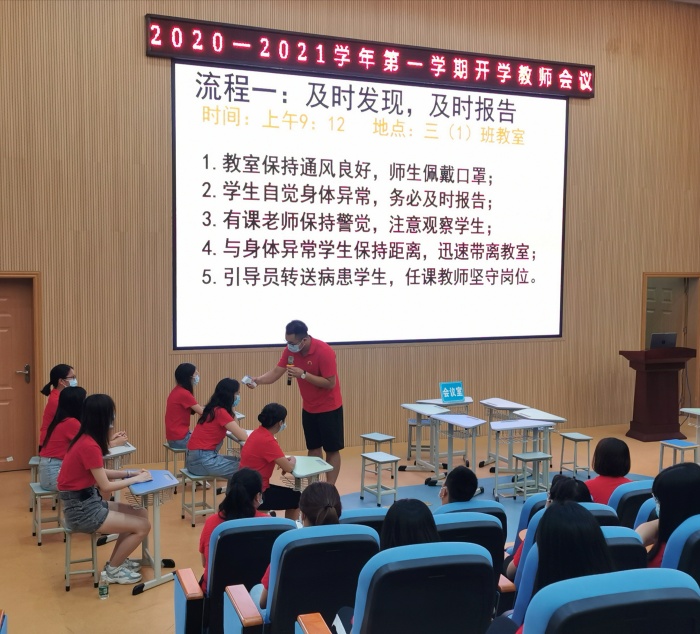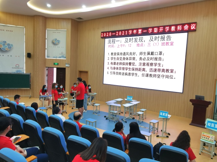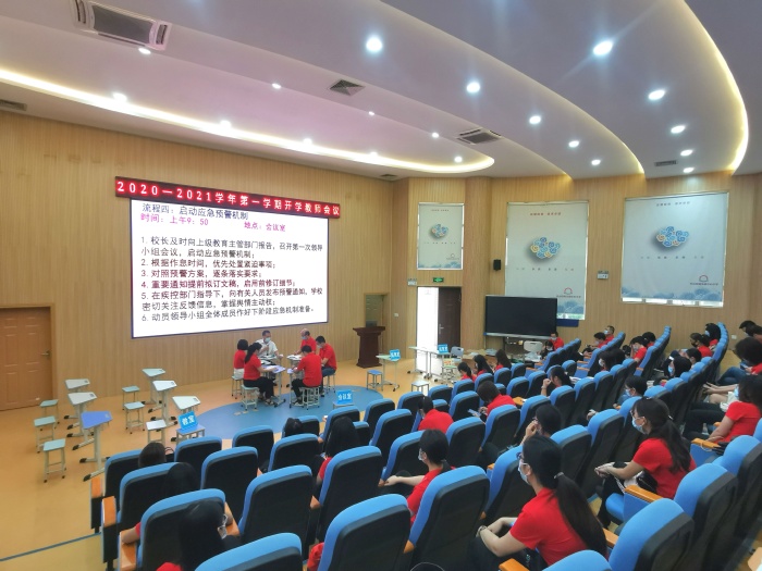 根據(jù)“早發(fā)現(xiàn)、早報(bào)告、早隔離、早治療”的原則,提高應(yīng)對(duì)新冠肺炎疫情防控的能力,學(xué)校疫情防控工作小組制定了秋季開學(xué)演練方案,本次演練以模擬學(xué)生課上出現(xiàn)異常情況,學(xué)校如何進(jìn)行應(yīng)急處置為主。從“及時(shí)發(fā)現(xiàn),及時(shí)報(bào)告”、“復(fù)測(cè)發(fā)熱學(xué)生體溫,采取隔離措施,核實(shí)情況”、“逐級(jí)上報(bào)疫情,配合做好轉(zhuǎn)運(yùn)工作”到“啟動(dòng)應(yīng)急預(yù)警機(jī)制,召開應(yīng)急小組成員會(huì)議”,全體人員按照應(yīng)急演練方案和相關(guān)規(guī)范流程,密切配合,反應(yīng)迅速,緊張有序,分工明確,做好各項(xiàng)應(yīng)急處置工作。包括后續(xù)對(duì)因病缺勤師生進(jìn)行一對(duì)一建檔跟進(jìn),掌握健康狀況,返校前做好健康查驗(yàn)工作,學(xué)校都周密地制定了計(jì)劃。
