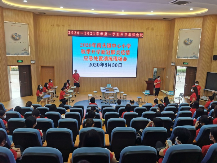 天高氣爽迎生歸,平安校園齊創(chuàng)建。為扎實(shí)做好2020年秋季開學(xué)準(zhǔn)備工作,提高老師們的疫情防范和應(yīng)急處置能力,切實(shí)保障全校師生返校后的健康和安全,按照學(xué)校要求和工作安排,8月30日上午,南頭鎮(zhèn)中心小學(xué)舉行秋季開學(xué)新冠肺炎疫情應(yīng)急處置演練。