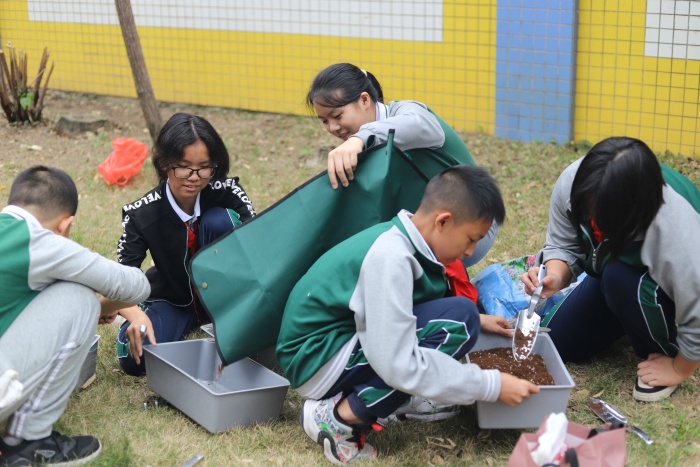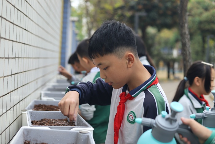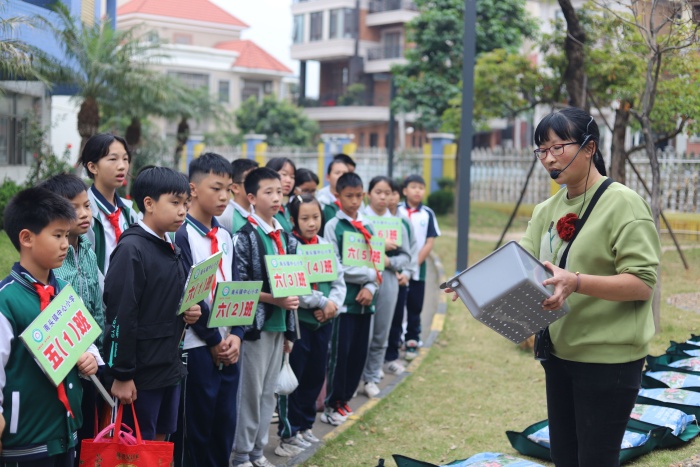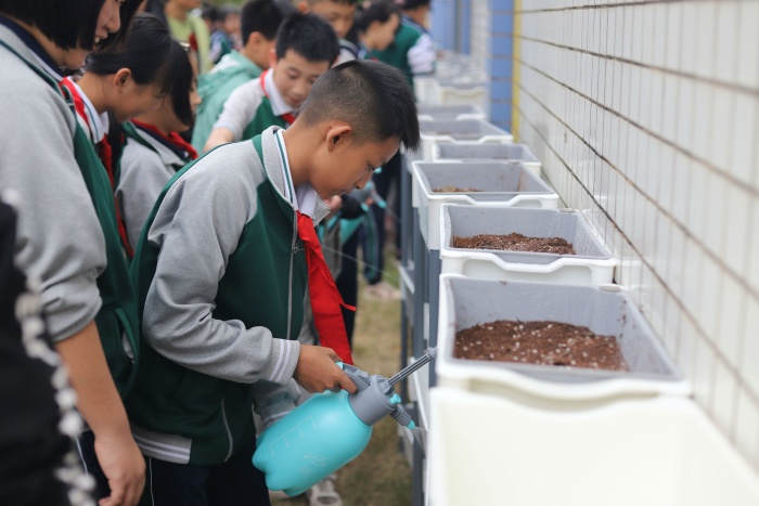 種植體驗活動前,為了讓學生更好地了解種植知識,冼家碧老師先給孩子們講解了如何根據季節選擇種植的種類,播種、澆水、施肥、防蟲過程中的注意事項等。孩子們認真傾聽,并在冼老師的帶領下開心地到自己的“責任田”開展春耕種植活動。