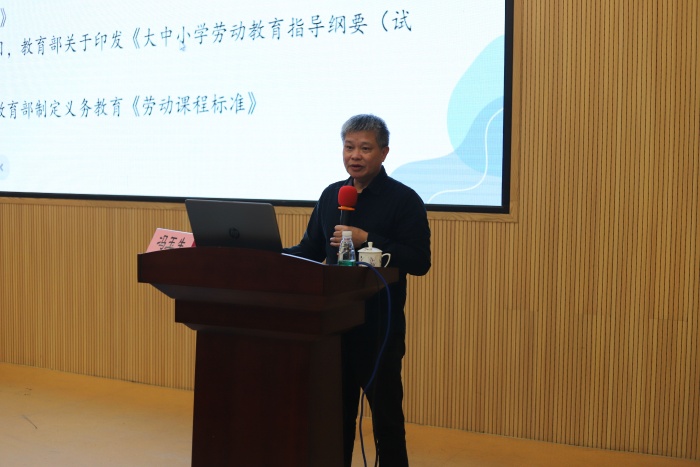 首先,由中山市教研室學特部馮玉生部長進行專題講座。馮部長從“我國的‘勞動教育’目標的發(fā)展歷程”,“勞動教育設計與實施的政策文件”,“勞動案例的開發(fā)原則”,“學校勞動教育的目標設計、內容建構和實施策略”和“學校勞動教育有效設計與實施的評價標準”五個方面深入淺出地將勞動教育課程方案的制定策略講得通透而深刻,讓在座的老師對勞動教育有了深入的理解與思考,相信在今后的教學中,大家將圍繞學生的核心素養(yǎng)培養(yǎng),積極進行勞動課堂教學的改革與研究,不斷優(yōu)化勞動課程的實施路徑。隨后,南頭鎮(zhèn)教育和體育事務中心黃再玲老師作總結發(fā)言。