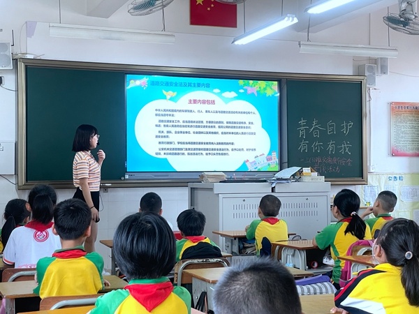 各班主任根據學生年齡特征和出行特點,從交通安全防范教育入手,利用有趣的交通安全課件,闡述道路交通安全重要性,普及交通安全常識,講解安全步行、安全乘坐交通工具和預防交通事故的措施,教育和引導同學們在日常出行過程中養成自覺遵守交通秩序、文明出行的良好習慣。