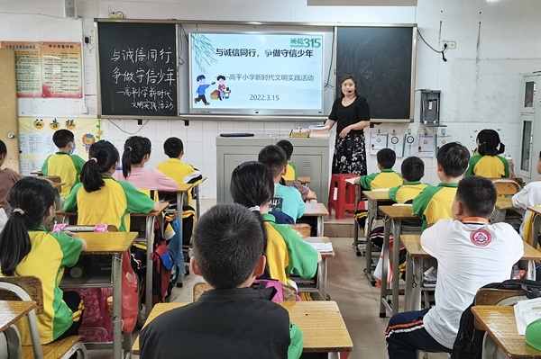 又是一年春風綠,又是一年3.15,沐浴著和煦的春風,我們迎來了第39個國際消費者權益日。為使隊員們了解作為公民應享有的消費權益,培養正確的消費意識,三角鎮高平小學開展了以“與誠信同行,爭做守信少年”為主題新時代文明實踐活動,向隊員滲透有關消費者自身權益保護的知識。
