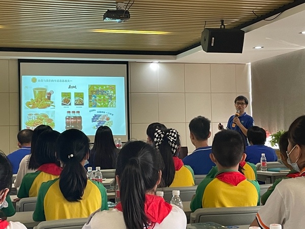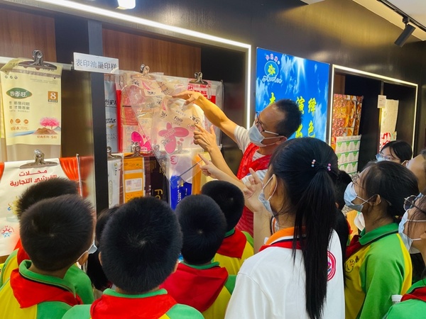 同學(xué)們整理好著裝,排好隊(duì)伍,帶著好奇又激動(dòng)的心情進(jìn)入園區(qū)。講解員從生活實(shí)際導(dǎo)入,展示了各式與油墨相關(guān)的物品,如孩子們非常喜愛(ài)的麥當(dāng)勞包裝、每天都會(huì)用到的紙巾、購(gòu)買物品時(shí)需要的紙幣......這些物品與生活息息相關(guān),無(wú)不告訴我們:哪里有生活,哪里就有油墨。然而,油墨的使用也會(huì)對(duì)生活造成一定的污染。除了對(duì)人體造成傷害,引發(fā)各類疾病,還會(huì)對(duì)導(dǎo)致自然環(huán)境的破壞,特別是大氣污染。因此,講解員進(jìn)一步從科技與環(huán)保的角度,提出創(chuàng)新理念,轉(zhuǎn)變生產(chǎn)方式。緊接著,工程師呼吁同學(xué)們?cè)谌粘5膶W(xué)習(xí)生活中,也要貫徹落實(shí)環(huán)保理念,讓我們的城市變得更加綠色、文明、和諧。