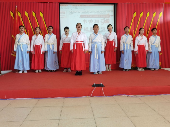 書香飄逸校園,經典浸潤人生。中華經典的鏗鏘音韻還在我們耳畔回響,中華經典的千古風韻還在我們心頭蕩漾。光明小學將以此次活動為契機,把經典誦讀推向深入,讓中華民族文化的瑰寶大放異彩,永遠芬芳。