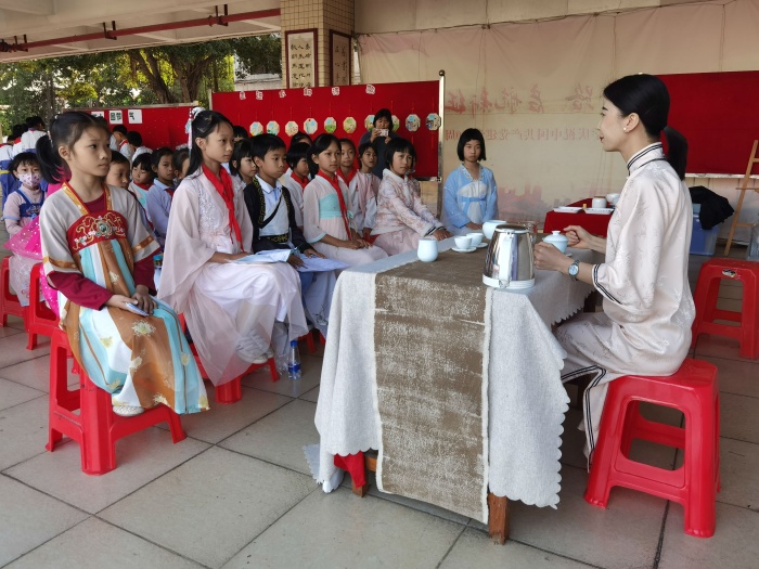 在傳統文化攤位上,三角非遺文化麒麟舞、三人根挺、粵劇、傳統農耕工具、二十四節氣等中國傳統文化展示吸引眼球,有的同學們情不自禁地現場讀起了傳統農耕詩。
