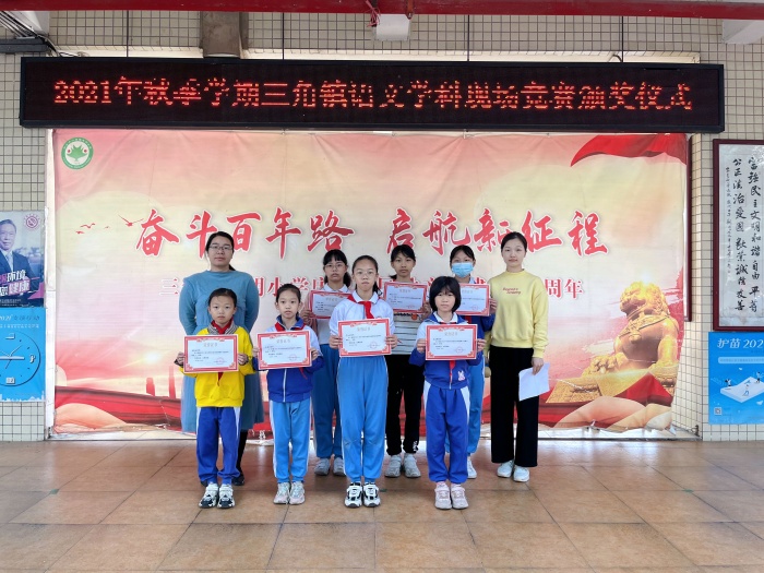 為進(jìn)一步推進(jìn)閱讀課程和書香校園建設(shè),培養(yǎng)學(xué)生“愛讀書、勤讀書、讀好書、提升閱讀寫作素養(yǎng)”的學(xué)習(xí)主體意識(shí),11月10日下午,三角鎮(zhèn)在四海學(xué)校舉辦主題為“妙筆書童真,書香進(jìn)校園”四至六年級語文綜合能力競賽。光明小學(xué)選派了7名同學(xué)參加現(xiàn)場角逐,均獲佳績。