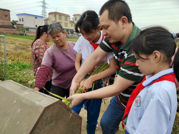 三角鎮光明村的稻田里稻穗低垂,谷粒飽滿,呈現出一派豐收的景象。11月7日下午,三角鎮光明小學組織了25個家庭開展水稻收割親子勞動教育活動。