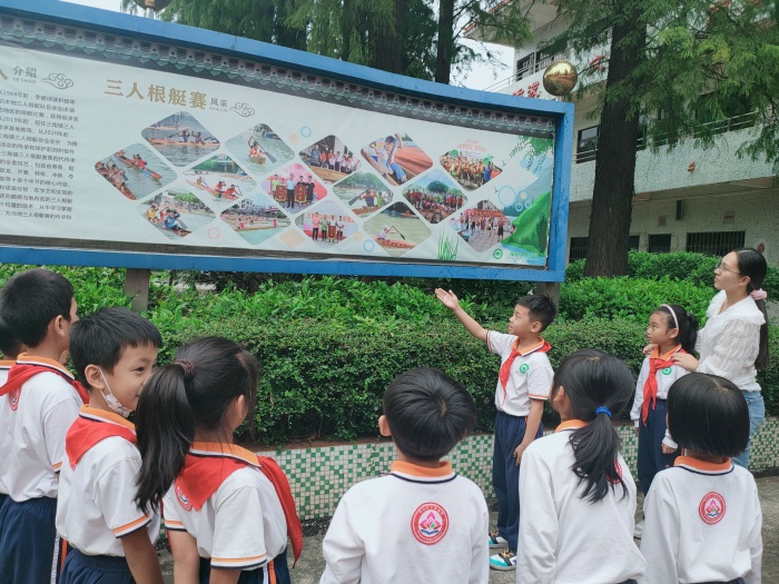 2020年10月,“三角鎮三人根艇賽”成功申報為中山市第八批市級非物質文化遺產代表性項目名錄。為弘揚優秀傳統文化,促進非物質文化遺產的推廣和傳承,讓孩子們從小接受傳統文化的熏陶,感受傳統文化的無窮魅力,培養孩子們“非遺保護”的認同感和愛國主義情感,2022年10月21日,三角鎮光明小學開展三人根艇“非遺宣講,少兒擔當”小講解員培訓活動。
