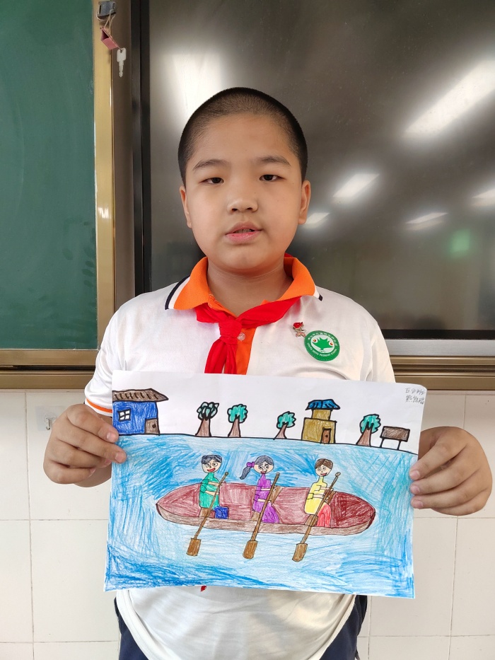 隨后,同學們在蕭老師的指導下,精心繪制圖畫,一幅幅主題分明、飽含真情的畫作呈現在畫紙上,抒發著對三人根艇文化的熱愛之情。