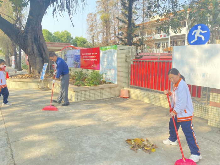 活動最后,為進一步加強街道環境衛生綜合整治,優化校園環境,創建美好家園,學校組織開展護綠清掃活動。同學們對校園及周邊道路的垃圾、落葉進行了清掃,勞動過程中,大家不怕臟不怕累,各司其職,熱情參與。